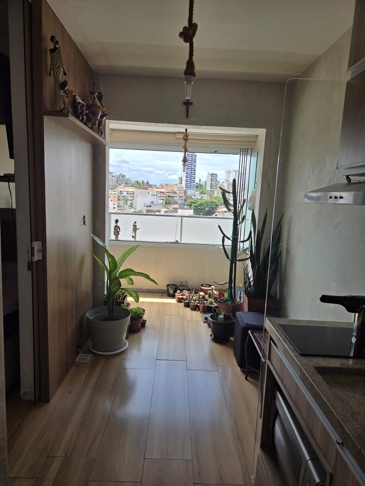 O apartamento está localizado no bairro Pituba possui 24 metros quadrados, andar alto, vista mar, com 1 quarto sendo 1 suíte com armários, sala com home, cozinha com armários e integrada a sala, varanda com fechamento de Reiki, 1 vaga de garagem coberta e rotativa.